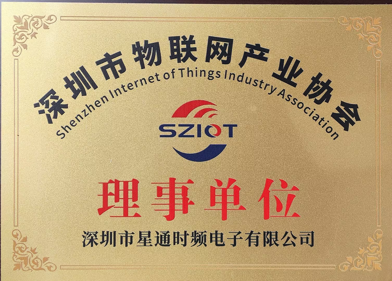深圳市物聯(lián)網(wǎng)產(chǎn)業(yè)協(xié)會理事單位證書